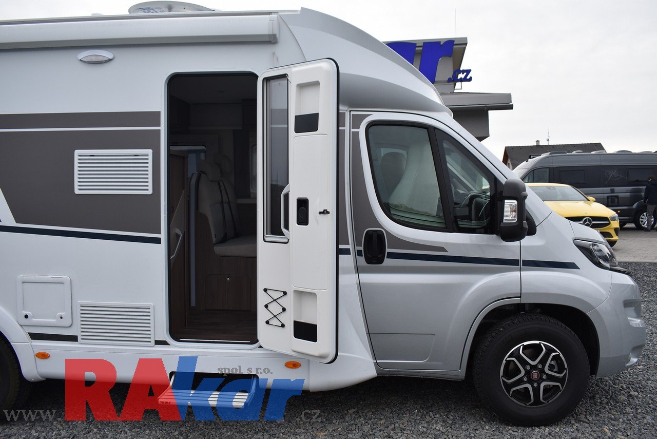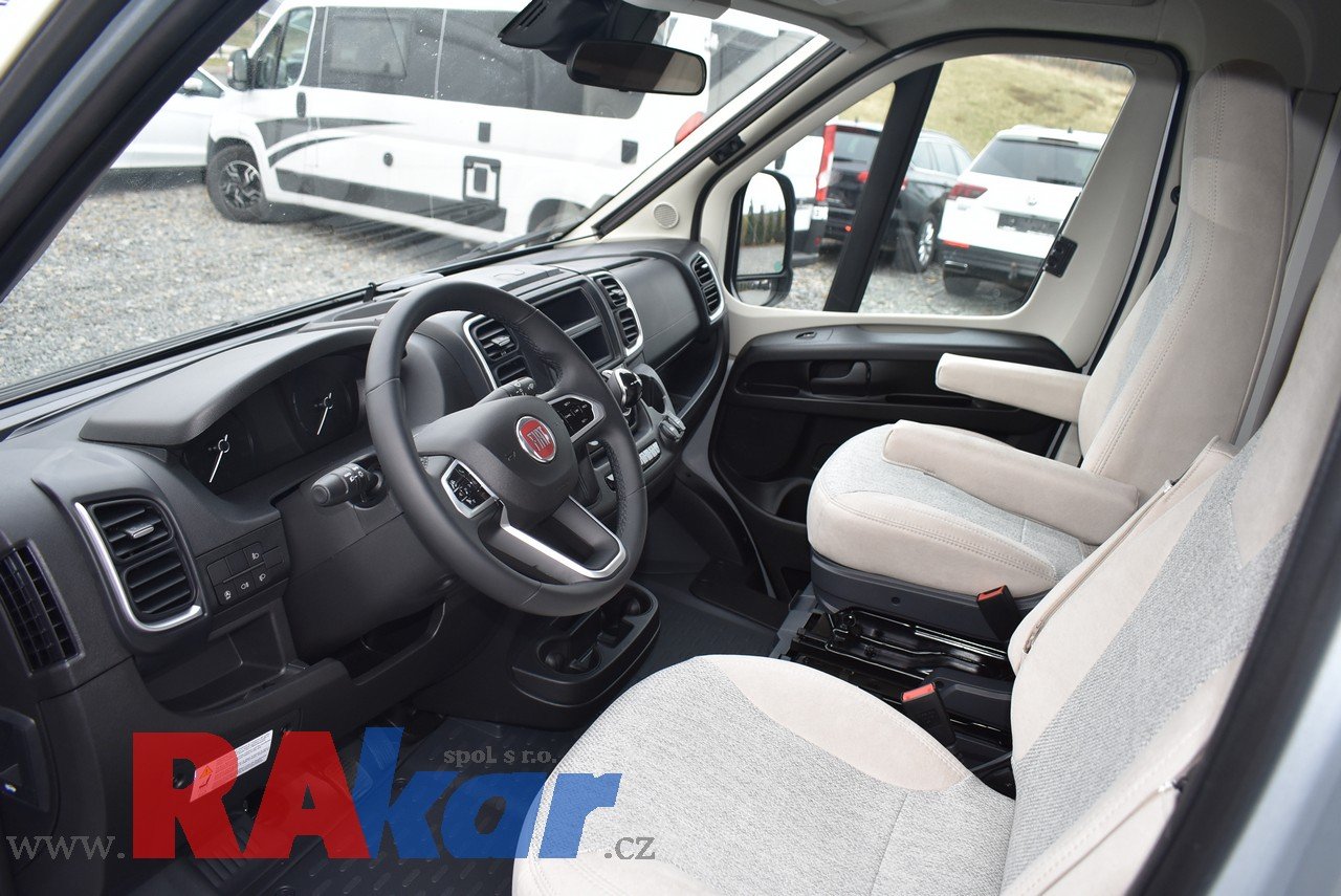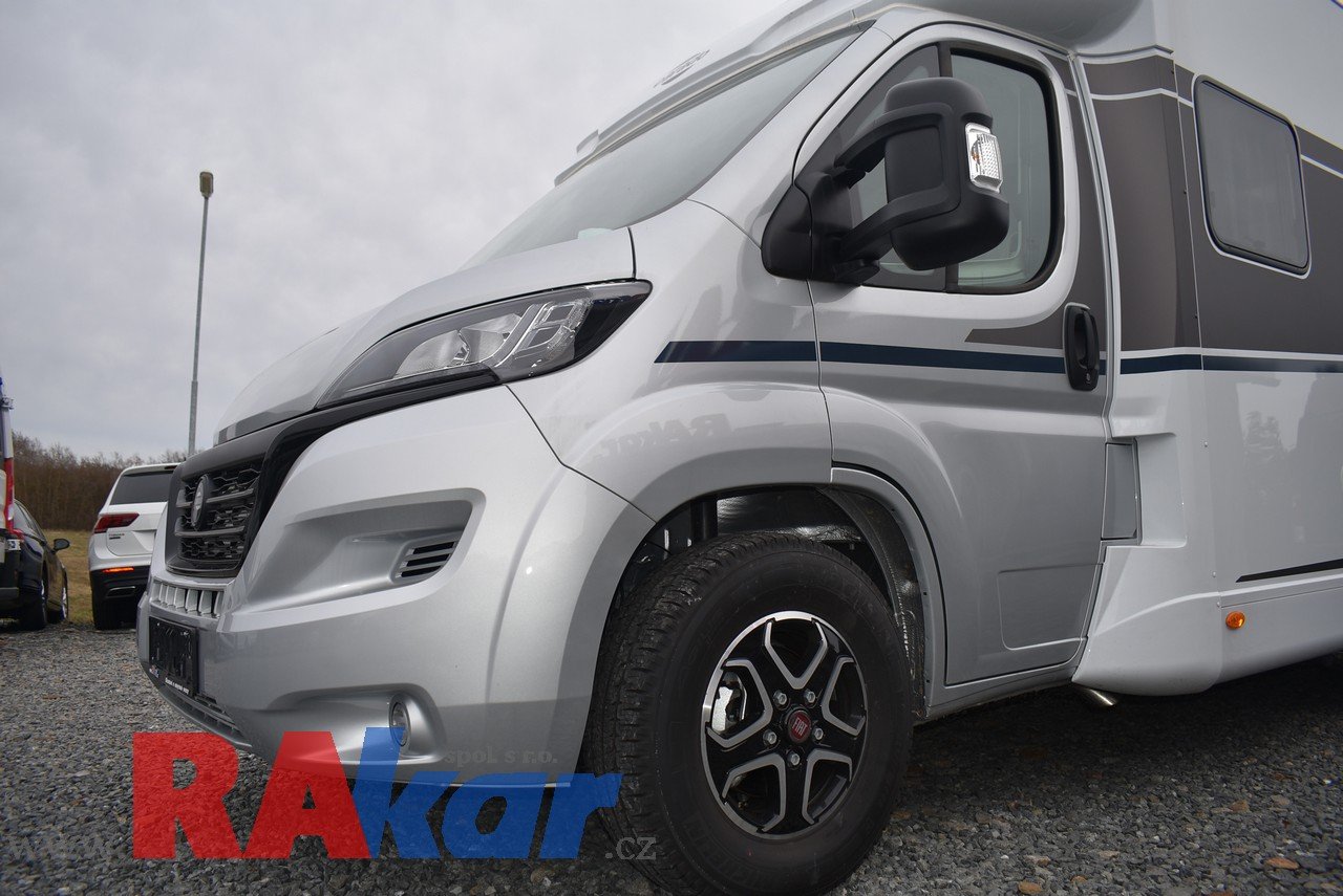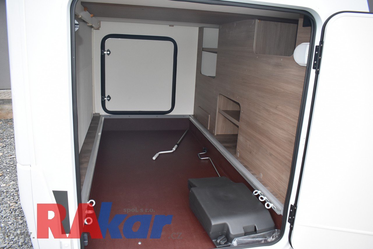Mírně jeté, nebourané, nelakované, nezničené, interiér jako nový. Před prodejem provedeme inspekční prohlídku. K odběru od 01/2026. Speciální edice Pro +, Fiat 2,2 Automat. Výbava: dvě nástavbové baterie, markýza, satelit, TV, infotaiment Xzent X-127 včetně couvací kamery, měnič napětí, booster + balíček výbavy Rakar, rámová zapuštěná okna, velká lednice 156 L + mrazák, podélné spaní s možností rozložení na letiště, stahovací dvojpostel, nádrž na čistou vodu 92 L, odpadní nádrž 120 L, nádrž na naftu 90 L, bojler 12 L, topení Truma C6 LPG, všude moskytiéry a zatemnění, střešní okno nad kabinou, dvoje dveře do garáže 110 x 95 cm / 80 x 75 cm. Záruka na obytnou nástavbu i podvozek do 08/2026, na těsnost karosérie 7 let ode dne uvedení do provozu. Možnost montáže jakékoli další výbavy dle vašeho přání. Možnost financování a pojištění. Veškeré informace na našem webu nebo tel. 608965069 (Jiří Mayer)