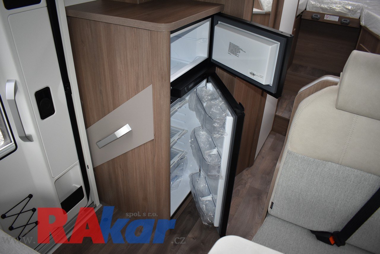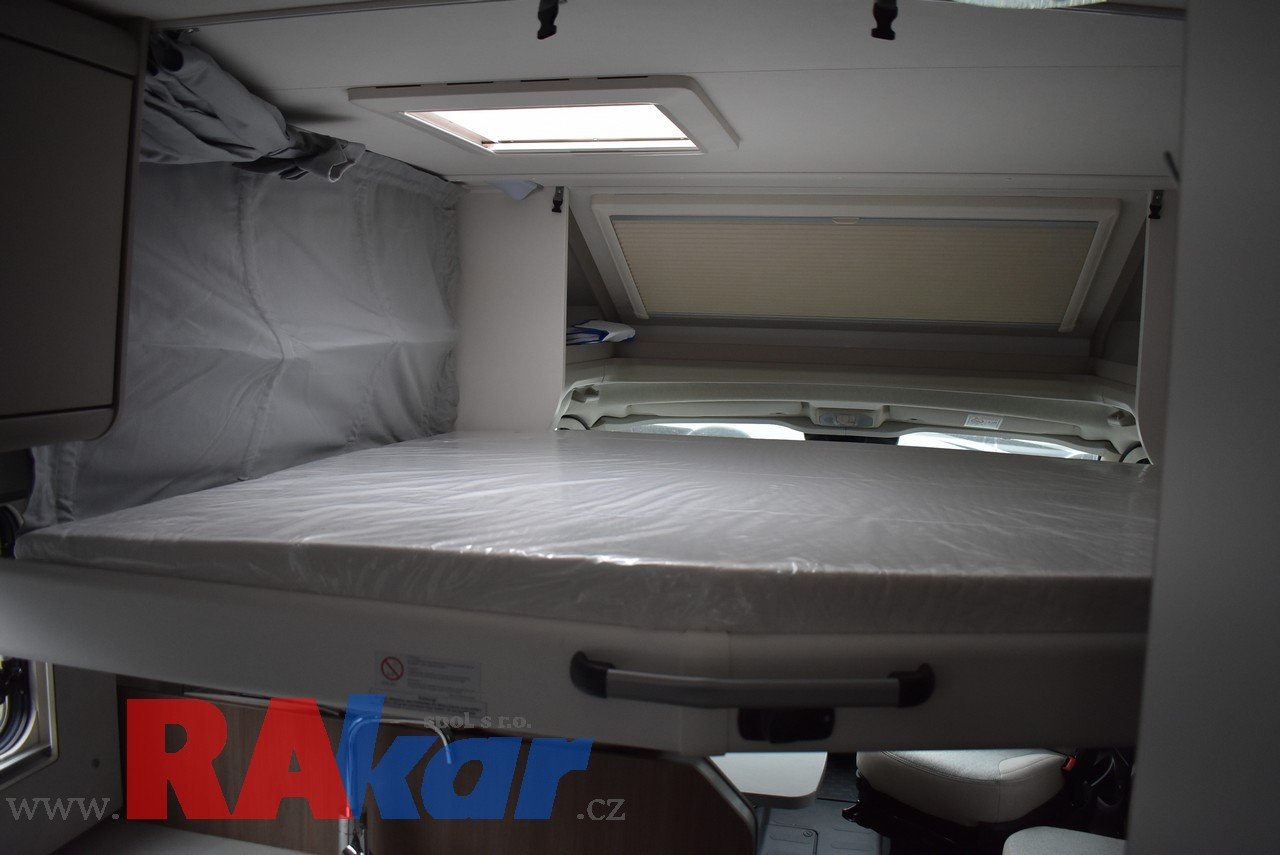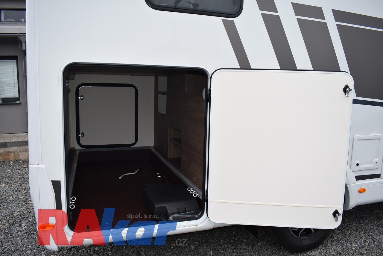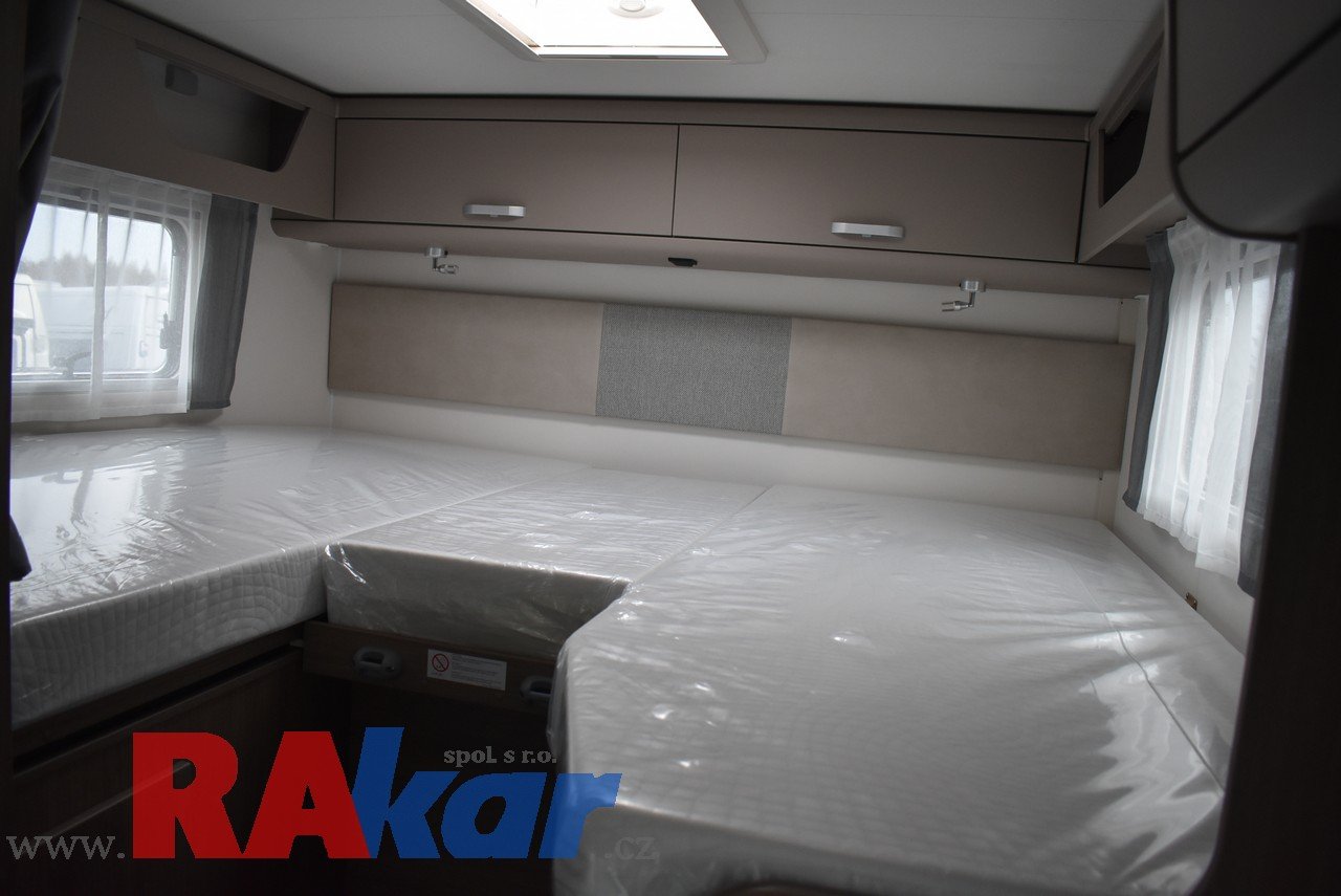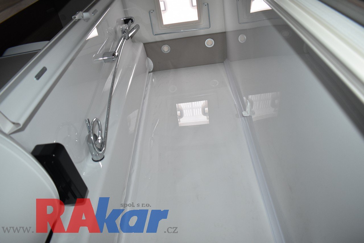 Mírně jeté, nebourané, nelakované, nezničené, interiér jako nový. Před prodejem provedeme inspekční prohlídku. K odběru od 01/2026. Speciální edice Pro +, Fiat 2,2 Automat. Výbava: dvě nástavbové baterie, markýza, satelit, TV, infotaiment Xzent X-127 včetně couvací kamery, měnič napětí, booster + balíček výbavy Rakar, rámová zapuštěná okna, velká lednice 156 L + mrazák, podélné spaní s možností rozložení na letiště, stahovací dvojpostel, nádrž na čistou vodu 92 L, odpadní nádrž 120 L, nádrž na naftu 90 L, bojler 12 L, topení Truma C6 LPG, všude moskytiéry a zatemnění, střešní okno nad kabinou, dvoje dveře do garáže 110 x 95 cm / 80 x 75 cm. Záruka na obytnou nástavbu i podvozek do 08/2026, na těsnost karosérie 7 let ode dne uvedení do provozu. Možnost montáže jakékoli další výbavy dle vašeho přání. Možnost financování a pojištění. Veškeré informace na našem webu nebo tel. 608965069 (Jiří Mayer)