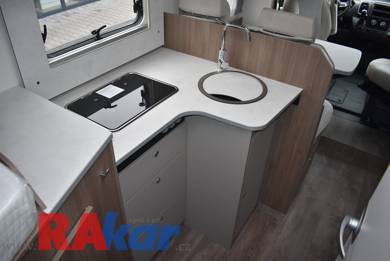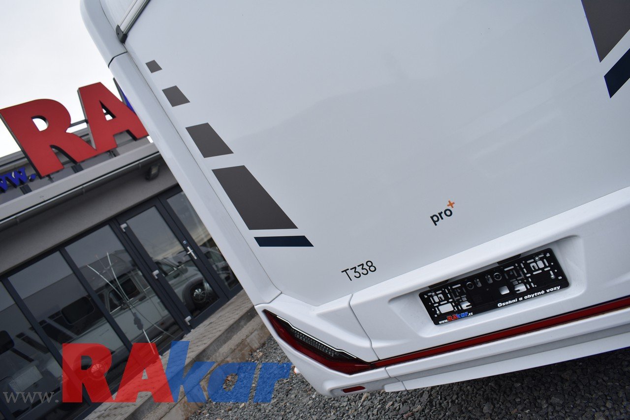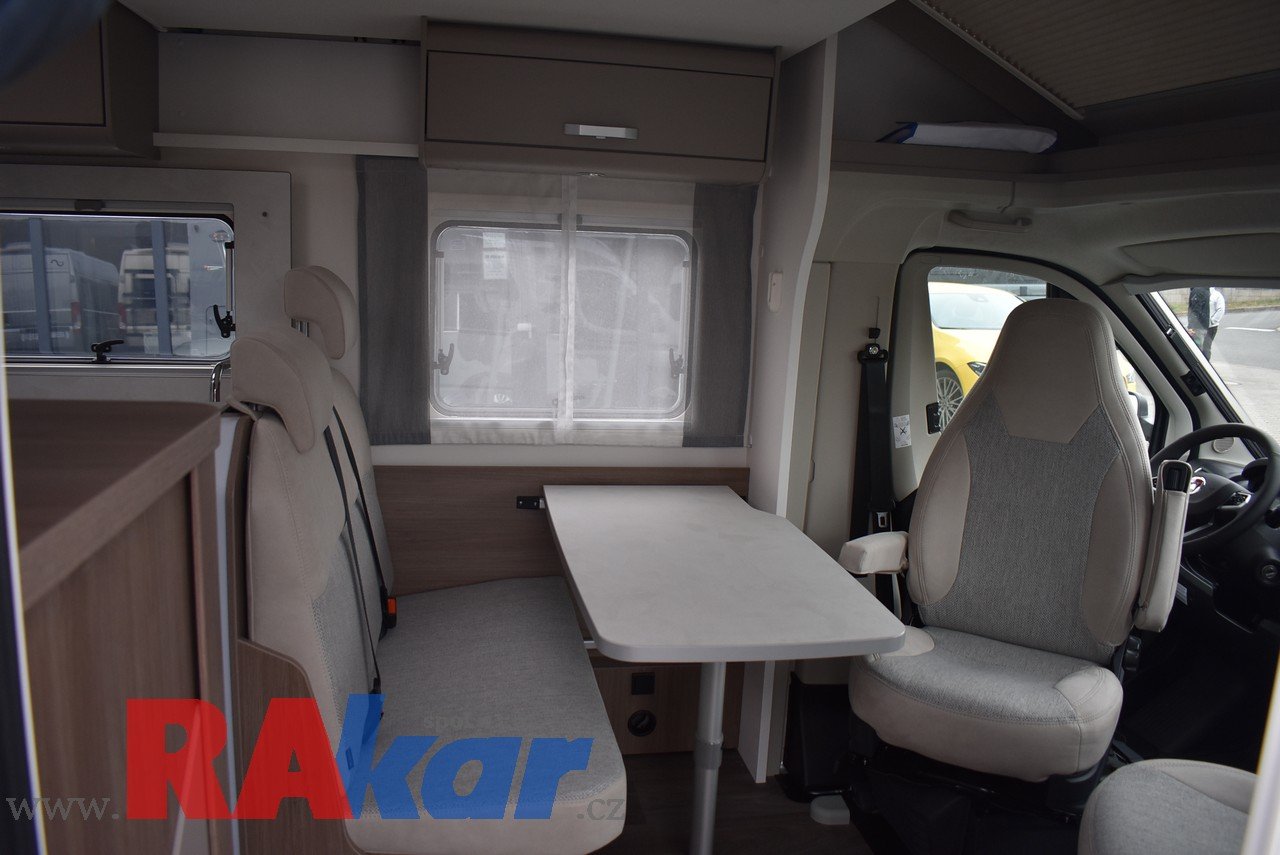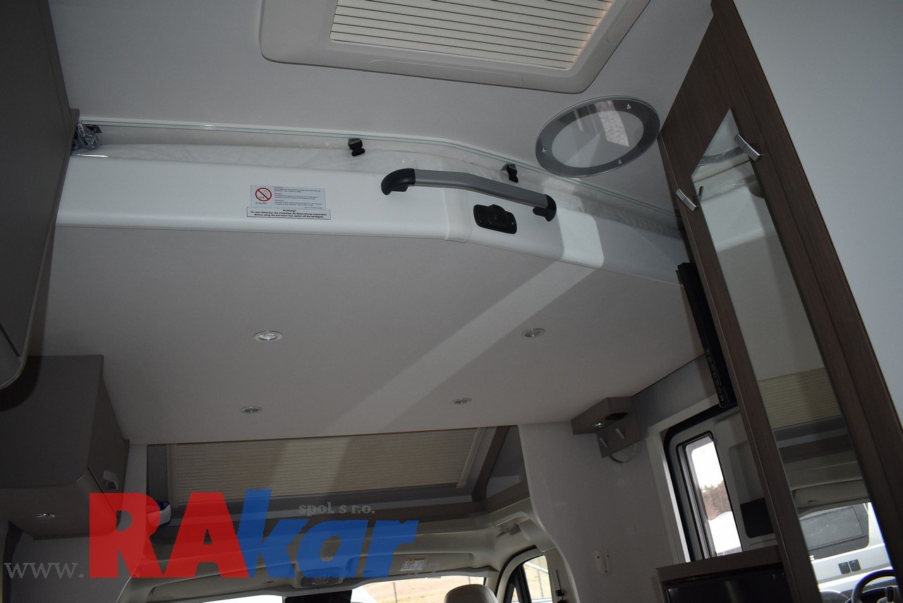 Mírně jeté, nebourané, nelakované, nezničené, interiér jako nový. Před prodejem provedeme inspekční prohlídku. K odběru od 01/2026. Speciální edice Pro +, Fiat 2,2 Automat. Výbava: dvě nástavbové baterie, markýza, satelit, TV, infotaiment Xzent X-127 včetně couvací kamery, měnič napětí, booster + balíček výbavy Rakar, rámová zapuštěná okna, velká lednice 156 L + mrazák, podélné spaní s možností rozložení na letiště, stahovací dvojpostel, nádrž na čistou vodu 92 L, odpadní nádrž 120 L, nádrž na naftu 90 L, bojler 12 L, topení Truma C6 LPG, všude moskytiéry a zatemnění, střešní okno nad kabinou, dvoje dveře do garáže 110 x 95 cm / 80 x 75 cm. Záruka na obytnou nástavbu i podvozek do 08/2026, na těsnost karosérie 7 let ode dne uvedení do provozu. Možnost montáže jakékoli další výbavy dle vašeho přání. Možnost financování a pojištění. Veškeré informace na našem webu nebo tel. 608965069 (Jiří Mayer)