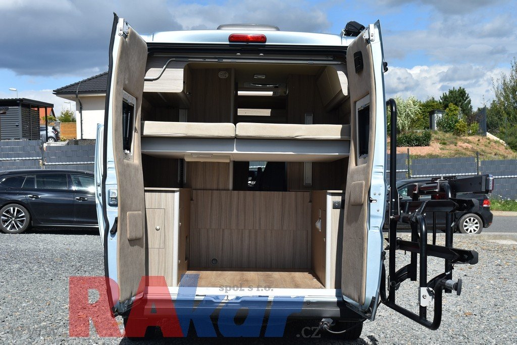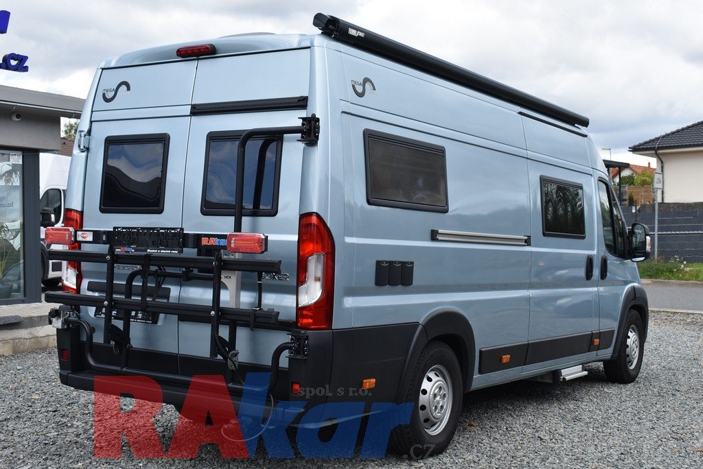 1. Majitel, Nehavarované, Servisní knížka. Vozidlo je po prvním majiteli, kupované u u nás nové- oficiální dealer zn. Megamobil (nebylo provozováno jako půjčovna), nebylo nikdy havarované, pravidelně servisované. Majitel si u nás kupuje po 5. letech nové. Model MegaSport je 6,4m dlouhý s podélným lůžkem vzadu až pro 3 lidi na spaní (190cm x 200/178 cm), postel je elektricky výškově nastavitelná s velkou garáží. Celkově je vozidlo v super kondici a to jak nástavbová část tak i ta podvozková. Vůz máme skladem. Maximální povolená hmotnost 3500kg - řidičák skupiny B. Na vozu je namontovaný držák na 2 elektrokola, solární panely, markýza, ventilátor MAXFANN, dobíjecí booster 30A, LiFepo baterie 150Ah, couvací kamera, navi, SOG odvětrání toalety, venkovní sprcha a mnoho dalších doplňků. Značka Megamobil je slovinský výrobce kvalitních vestaveb s velmi dobrým zateplením na zimu a kvalitou zpracování.